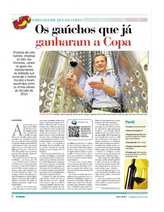 Vinícola Lidio Carraro, de Bento Gonçalves, foi escolhida pela Fifa para garantir o vinho oficial do evento, com direito a aperitivo já na Copa das Confederações.